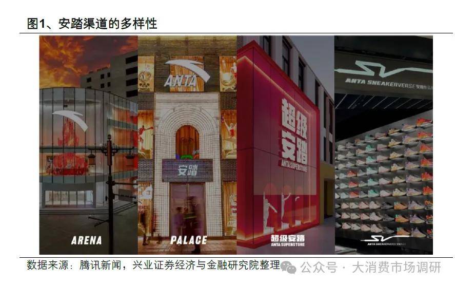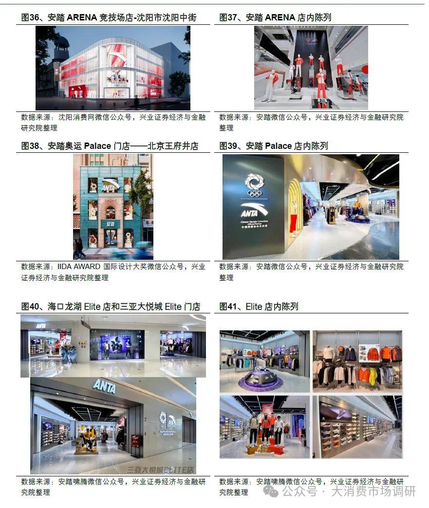 ——“ 超級安踏”(重重性價(jià)比)/“ 安踏冠軍店”(重重戶外)/“ 安踏作品集店”(以潮鞋為核心)/“安踏0 碳使命店”(探索ESG 商業(yè)化發(fā)展),可分可合,分是品類品牌,合是ARENA 競技場店或Palace 殿堂級店,提供渠道業(yè)態(tài)的多樣性。