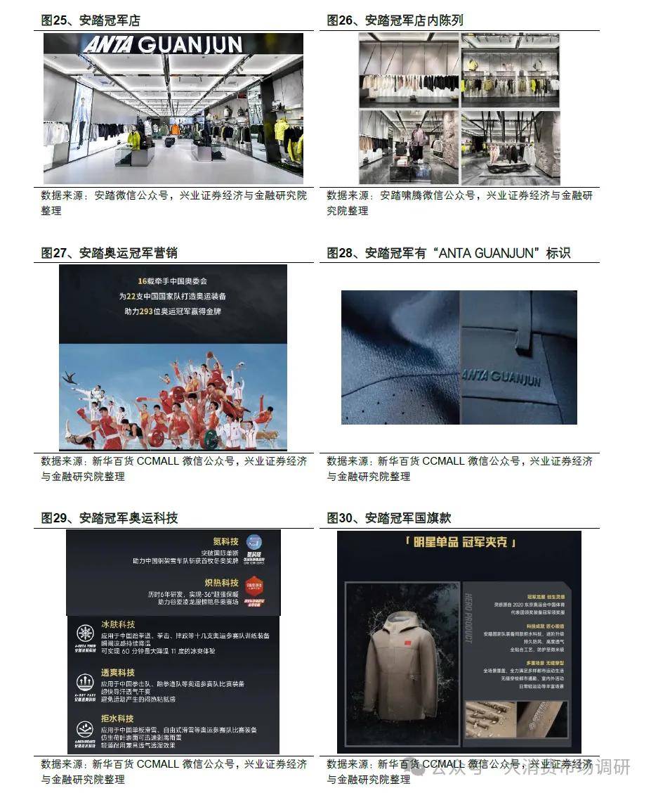冠軍店將奧運(yùn)的科技下放,聚焦于打造中國菁英戶外運(yùn)動品牌,打造更進(jìn)階,更專業(yè)的戶外產(chǎn)品。2009-2024 年,安踏連續(xù)贊助16 年奧運(yùn),安踏將國家隊(duì)裝備科技下放,“冠軍系列”產(chǎn)品主打國家隊(duì)同款,產(chǎn)品主要分為安踏冠軍全天候、安踏冠軍徒步、安踏冠軍滑雪和安踏冠軍越野跑系列四大類,涵蓋徒步、滑雪、越野跑等多種戶外運(yùn)動場景,能夠滿足不同等級的戶外防護(hù)和都市通勤實(shí)用性需求。