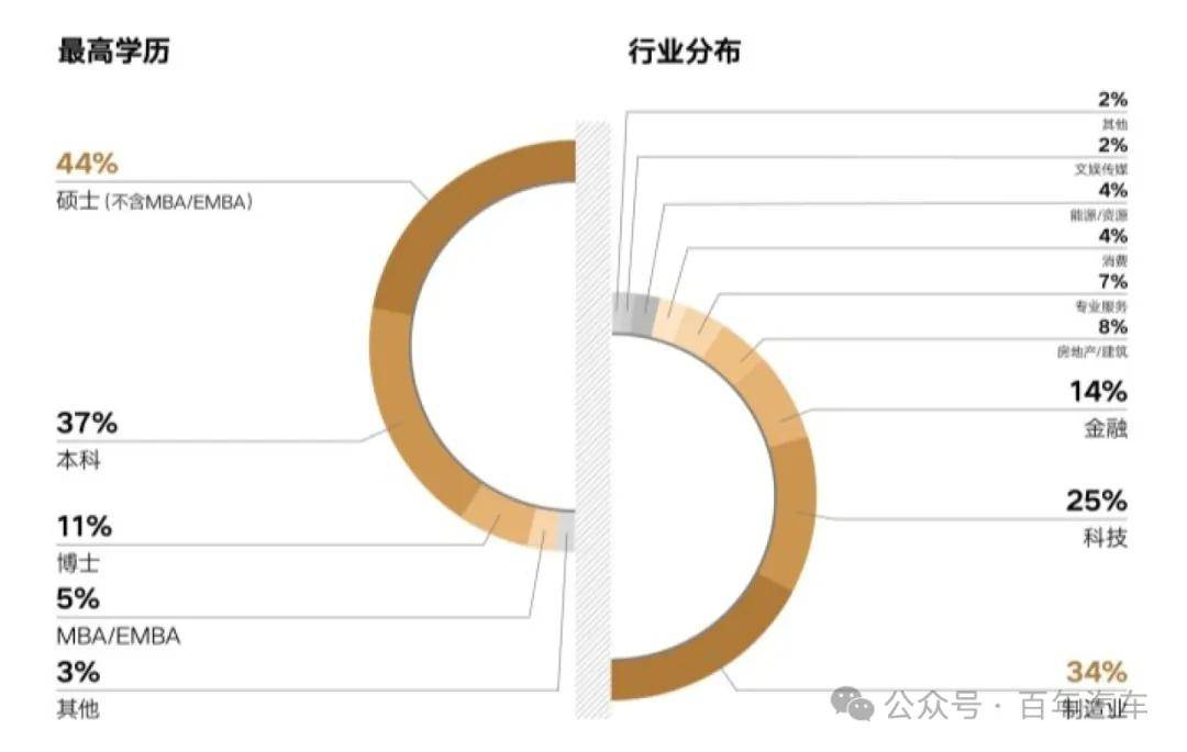 調(diào)研結(jié)果顯示,超豪華車(chē)消費(fèi)者從行業(yè)分布看,制造業(yè)占比最高,達(dá)34%:其次為科技行業(yè)和金融行業(yè),分別占比25%和14%。