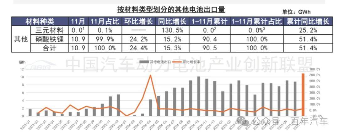 1-11月,我國(guó)其他電池累計(jì)出口量為90.5GWh,累計(jì)同比增長(zhǎng)51.