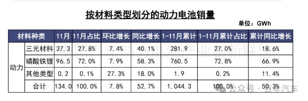 11月動(dòng)力和其他電池銷(xiāo)量同比增長(zhǎng)52.2%。