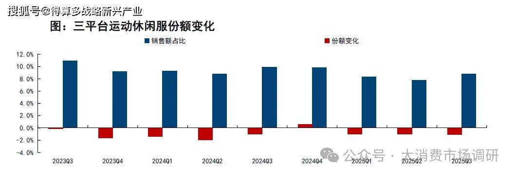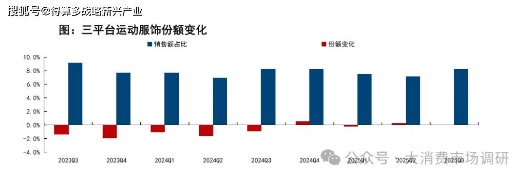 ① 運(yùn)動服飾2025Q2銷售額占比8.2%,同比變動0個百分點(diǎn);