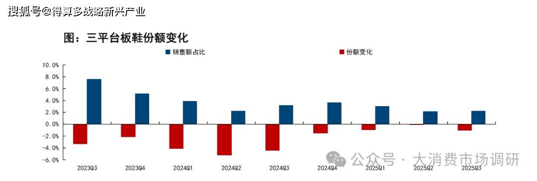 ① 板鞋2025Q3銷售額占比2.2%,同比變動-1個百分點(diǎn);