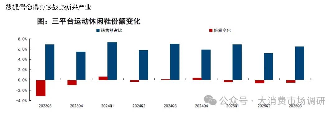 ① 運(yùn)動休閑鞋2025Q3銷售額占比6.5%,同比變動-0.5個百分點(diǎn);