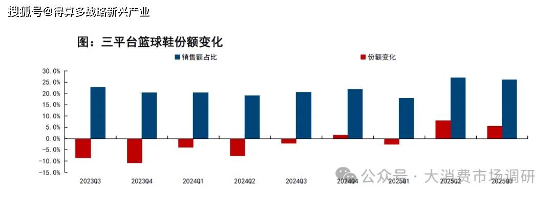 ① 籃球鞋2025Q3銷售額占比26%,同比變動+5.4個百分點(diǎn);
