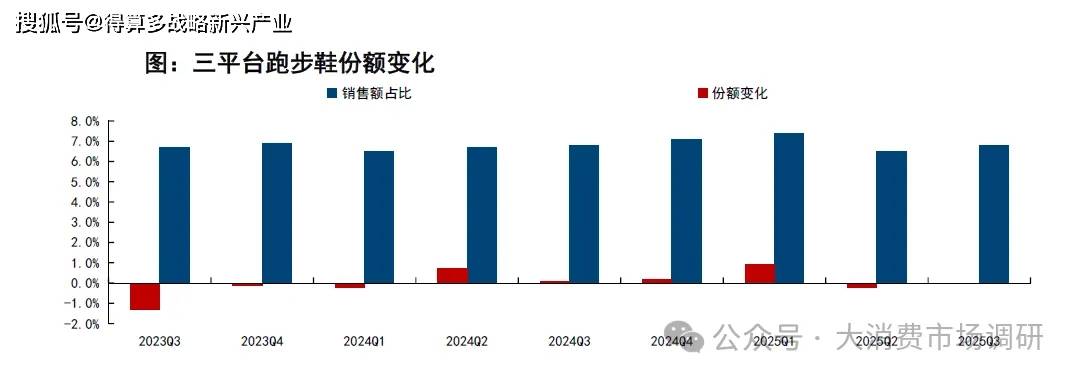 ① 跑步鞋2025Q3銷售額占比6.8%,同比變動(dòng)0個(gè)百分點(diǎn);