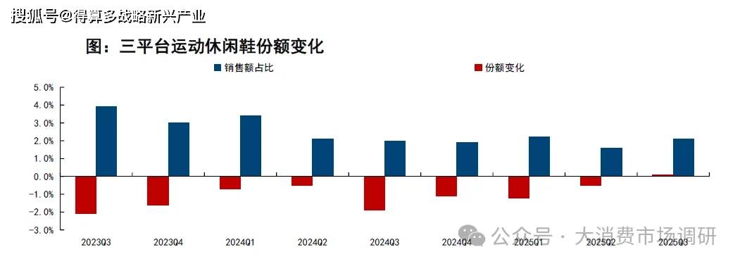 ① 運(yùn)動(dòng)休閑鞋2025Q3銷售額占比2.1%,同比變動(dòng)+0.1個(gè)百分點(diǎn);