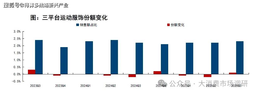 ① 運(yùn)動服飾2025Q3銷售額占比2.3%,同比變動+0.1個(gè)百分點(diǎn);
