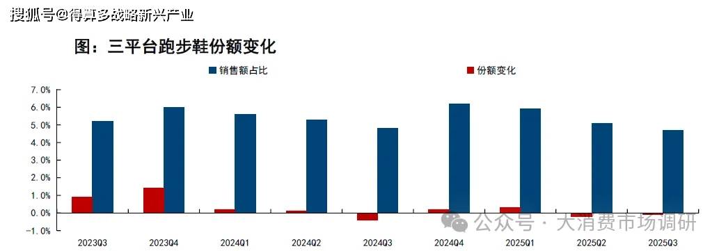 ① 跑步鞋2025Q3銷售額占比4.7%,同比變動-0.1個(gè)百分點(diǎn);
