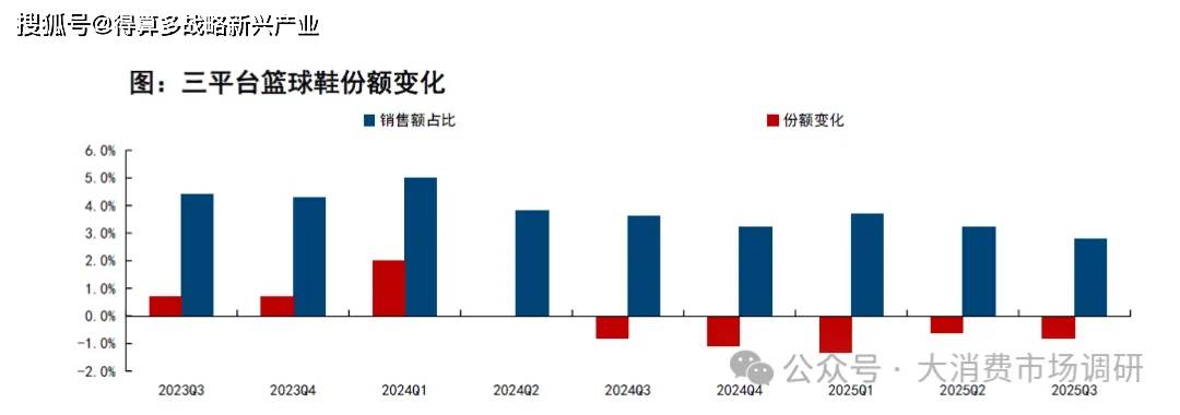 ① 籃球鞋2025Q3銷售額占比2.8%,同比變動-0.8個(gè)百分點(diǎn);