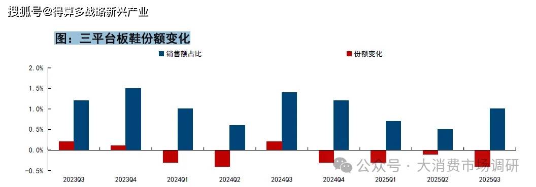 ① 板鞋2025Q3銷售額占比1%,同比變動-0.4個(gè)百分點(diǎn);