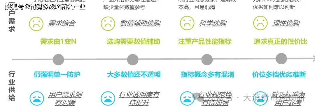 由于用戶對(duì)防曬衣的功能訴求多樣化,需要衡量的性能變多,但目前缺少一個(gè)統(tǒng)一的可量化的衡量標(biāo)準(zhǔn)輔助用戶決策,所以導(dǎo)致用戶決策流程變長(zhǎng),消費(fèi)者需要花更多時(shí)間去找測(cè)評(píng)、去看測(cè)評(píng),才能選出來(lái)。但即便做了前期的“功課”,由于各品牌對(duì)防曬衣性能公開(kāi)程度不同,或是提供的信息僅限于一些感性化的描述,依然難以進(jìn)行具體的量化對(duì)比。然而,這些問(wèn)題的根本原因還是在于防曬衣行業(yè)缺乏規(guī)范和統(tǒng)一的標(biāo)準(zhǔn),導(dǎo)致市場(chǎng)仍有部分品牌打擦邊球,誤導(dǎo)消費(fèi)者,擾亂市場(chǎng)秩序。
