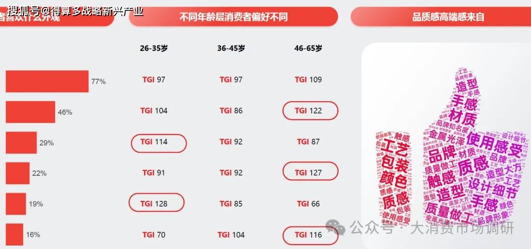 ? 而在外觀、手感等實(shí)際體驗(yàn)外,品牌知名度、品牌形象等是帶來品質(zhì)感和高端感的情感要素,形成品牌和產(chǎn)品的互相支撐
