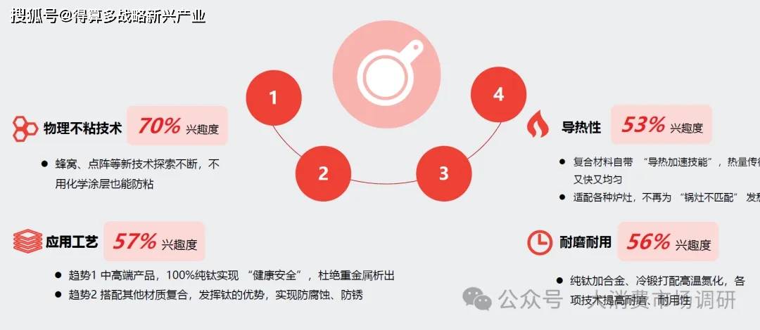 物理不粘技術(shù)、鈦材質(zhì)應(yīng)用工藝、耐磨耐用和導(dǎo)熱性等特性消費(fèi)者關(guān)注度高,是產(chǎn)品的基礎(chǔ),未來可持續(xù)優(yōu)化提升