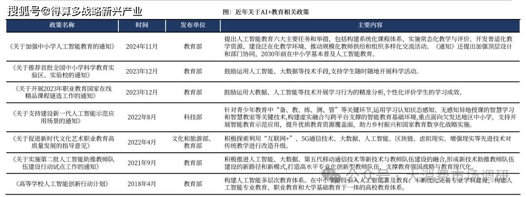 政策大力支持“AI+教育”,未來有望看到更多細節(jié)性政策落地。2024年11月,教育部辦公廳發(fā)布《關(guān)于加強中小學人工智能教育的通知》,提出人工智能教育六大主要任務(wù)和舉措,明確要求2030年前在中小學基本普及人工智能教育。一方面,這些政策有助于推動AI應(yīng)用進校園、進課堂,營造積極的教育氛圍,培養(yǎng)學生使用AI的能力和習慣;另一方面,政策提出將AI納入課后服務(wù)和學生綜合評價體系,并推動開發(fā)普適性教學資源、建設(shè)覆蓋面廣的教學環(huán)境。這些舉措有助于在實際教學場景中深入落實AI的應(yīng)用,豐富教學資源,完善數(shù)字要素建設(shè),進一步激發(fā)相關(guān)軟硬件的配套需求。我們認為,政策對于“AI+教育”態(tài)度已明確,未來有望相關(guān)應(yīng)用有望加速落地,提供更多高質(zhì)量教育資源供給。