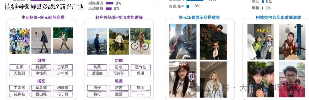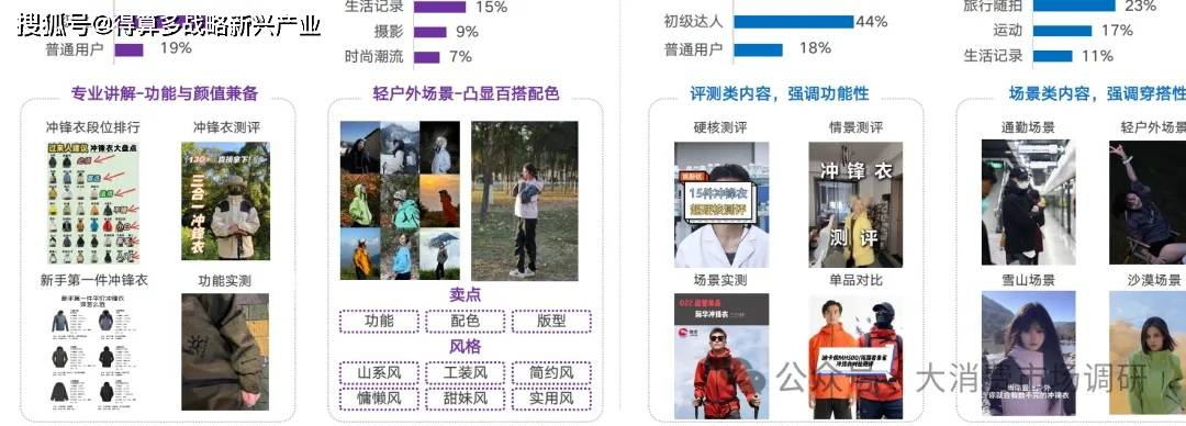 KOL及內(nèi)容偏好:偏好戶外和穿搭博主,內(nèi)容兼顧功能講解與顏值穿搭
