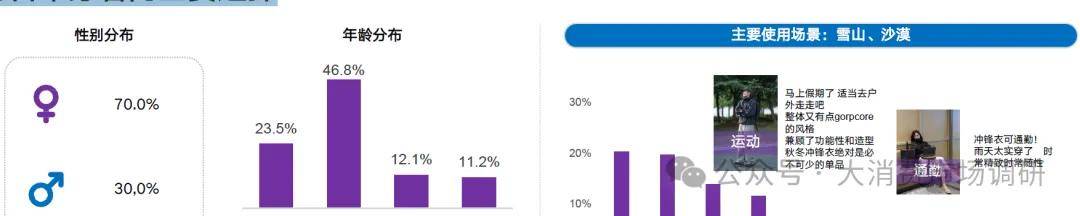 人群特征:年輕上班族為主力人群,沖鋒衣的時(shí)尚百搭和實(shí)用特性,使其成為日常穿著的主要選擇