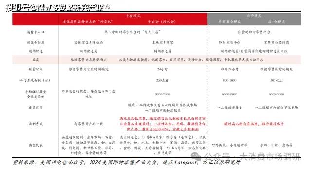 2)平臺前置倉模式(24 年占美團閃購業(yè)務(wù) GMV 的 20%):本質(zhì)是對傳統(tǒng)低效夫妻店模式的轉(zhuǎn)化升級(倉更大、陳列密度更高、平臺數(shù)據(jù)賦能選品、SKU 更全、覆蓋區(qū)域更廣、24h 經(jīng)營、租金低)。更多滿足應(yīng)急性消費,通過銷售高毛利的白牌百貨日雜商品實現(xiàn)盈利,一次性浴巾、牙刷、數(shù)據(jù)線等白牌商品,數(shù)量占比 30-40%,貢獻大多數(shù)利潤。品牌商品價格透明度高,利潤空間有限。閃電倉模式覆蓋城市范圍更廣,既有一二線城市又有五六線城市及縣級市場,當前非 KA 商家閃電倉在一二線城市飽和度已較高。我們將閃電倉模式主要分為兩大類,非 KA 商家和 KA 商家,具體看:i)非 KA 商家:進一步可分為四小類:a)加盟連鎖,為美團在特定區(qū)域為補充供給而合作開設(shè)的閃電倉品牌。典型代表為松鼠便利和斑馬超市。松鼠便利自 2022年開始在廣東、湖南等地試驗,兩年內(nèi)開出 100+家門店。并開始向全國招募加盟商。相較其他閃電倉可自主選擇進貨渠道(部分中小商家多通過 1688、拼多多進行采購),美團對松鼠便利采取強控供貨政策。但美團介入采購環(huán)節(jié)的部分貨物在價格上競爭力不足,一些區(qū)域性成規(guī)模的閃電倉品牌可以通過更上游的經(jīng)銷渠道拿到更低價的品牌商品。此外,由于部分區(qū)域性閃電倉經(jīng)營方的精細化運營手段更豐富。美團閃購于 24Q3 上線斑馬超市,由美團冠名品牌和線上運營,地方商超負責供貨及招募商家負責閃電倉經(jīng)營的生鮮雜貨零售前置倉項目,當前在鄭州、濟南、濟寧三地提供服務(wù),處于早期試驗階段。