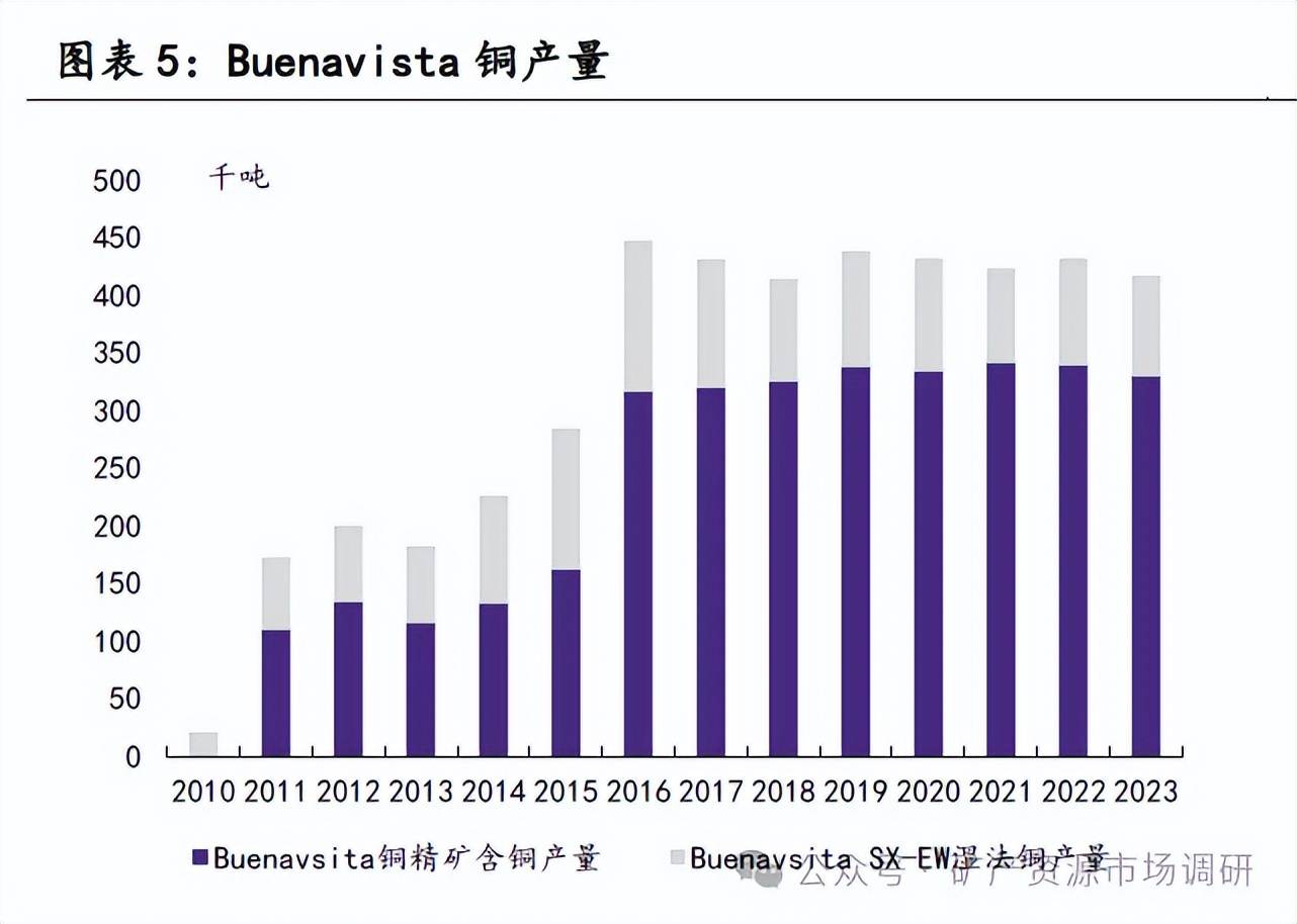 2023年Buenavista項(xiàng)目合計(jì)產(chǎn)銅41.7萬(wàn)噸,產(chǎn)鉬金屬5410噸。