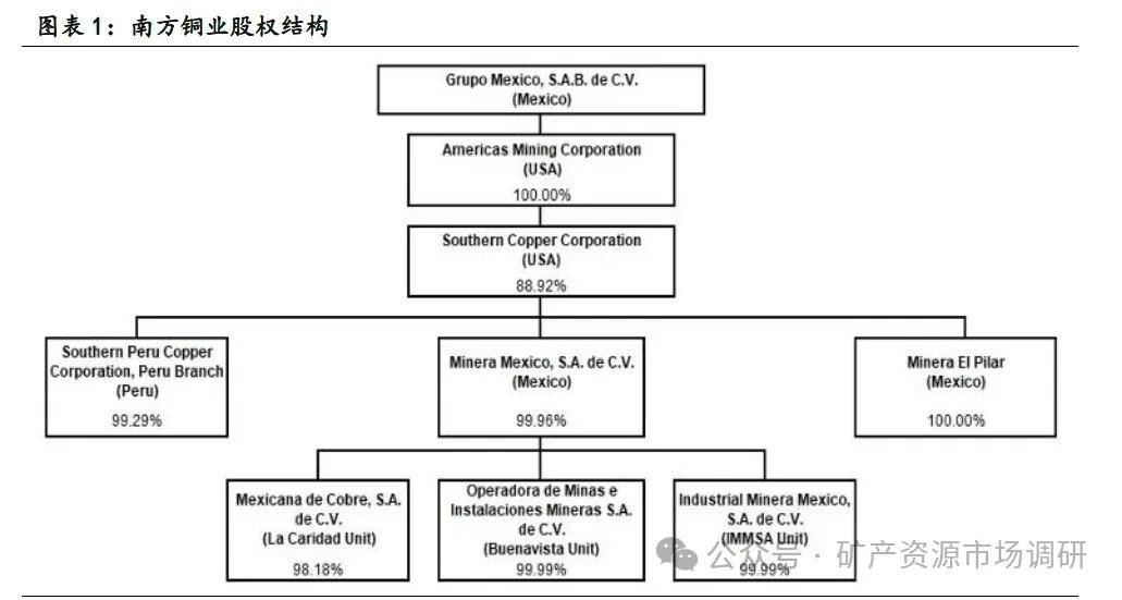 Minera Mexico是一家控股公司,其所有業(yè)務(wù)都通過(guò)分為三個(gè)部門(mén)的子公司進(jìn)行:(i)La Caridad部門(mén)(ii)Buenavista部門(mén)和(iii)IMMSA部門(mén)。南方銅業(yè)擁有Minera Mexico 99.96%的股份。