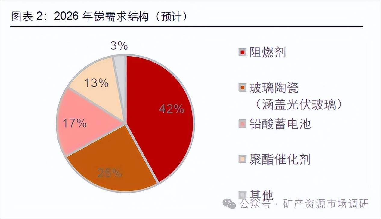 過去幾年,伴隨全球光伏高速增長的裝機(jī)需求。光伏玻璃澄清劑中銻需求份額有望逐漸抬升; 21年玻璃陶瓷占銻終端需求 10%(光伏玻璃涵蓋在本科目中 2023年,玻璃陶瓷占比已提升至接近翻倍;展望 2026年,銻的需求結(jié)構(gòu)的重構(gòu)有望持續(xù),阻燃劑仍是銻需求的“基本盤”,但已經(jīng)從前期的 55%進(jìn)一步回落到 42%;作為邊際彈性貢獻(xiàn)的“光伏”需求 玻璃陶瓷領(lǐng)域,有望從 19%抬升到 25%。