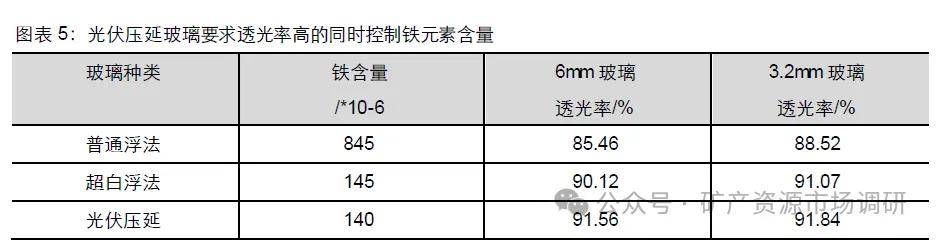 光伏玻璃即光伏超白壓延玻璃的簡稱,主要應(yīng)用于光伏組件產(chǎn)業(yè)的蓋板或背板玻璃,起到封裝保護(hù)、機(jī)械支撐和透光散射的作用 。該 產(chǎn)品主要特點(diǎn)為低鐵、高透光率,采用壓延成形的工藝方式。 所以 1 去除生產(chǎn)環(huán)節(jié)鐵元素 2 降低制造環(huán)節(jié)氣泡留存是保證玻璃質(zhì)量的兩大關(guān)鍵。
