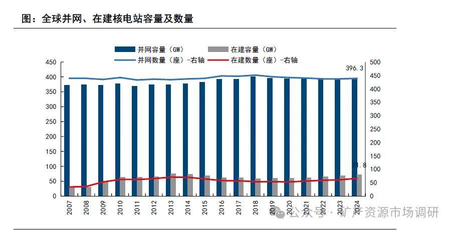 u 根據(jù)世界核協(xié)會(huì)數(shù)據(jù),截至2024年12月,全球核電并網(wǎng)容量為396GW,并網(wǎng)核電站439座,在建容量71.8GW,在建核電站66座。根據(jù)Our World in Data,2023年全年全球核電發(fā)電量占比9.11%。