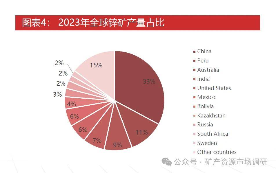 ? 美國(guó)地質(zhì)調(diào)查局(USGS)數(shù)據(jù)顯示,2023 年全球鋅儲(chǔ)量(經(jīng)濟(jì)可采儲(chǔ)量)2.2億噸,主要分布在澳大利亞、中國(guó)、墨西哥、俄羅斯等國(guó)。
