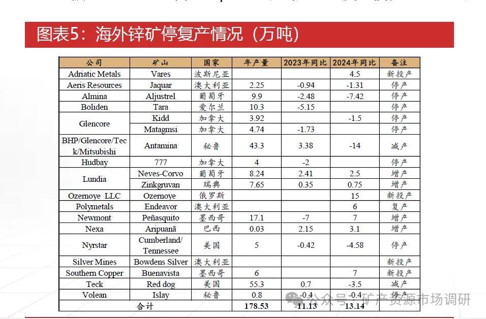 2023-2024年,全球新增冶煉項(xiàng)目增量主要在亞洲地區(qū),隨著冶煉廠復(fù)產(chǎn)產(chǎn)能增加,全球精鋅供應(yīng)顯著恢復(fù)。
