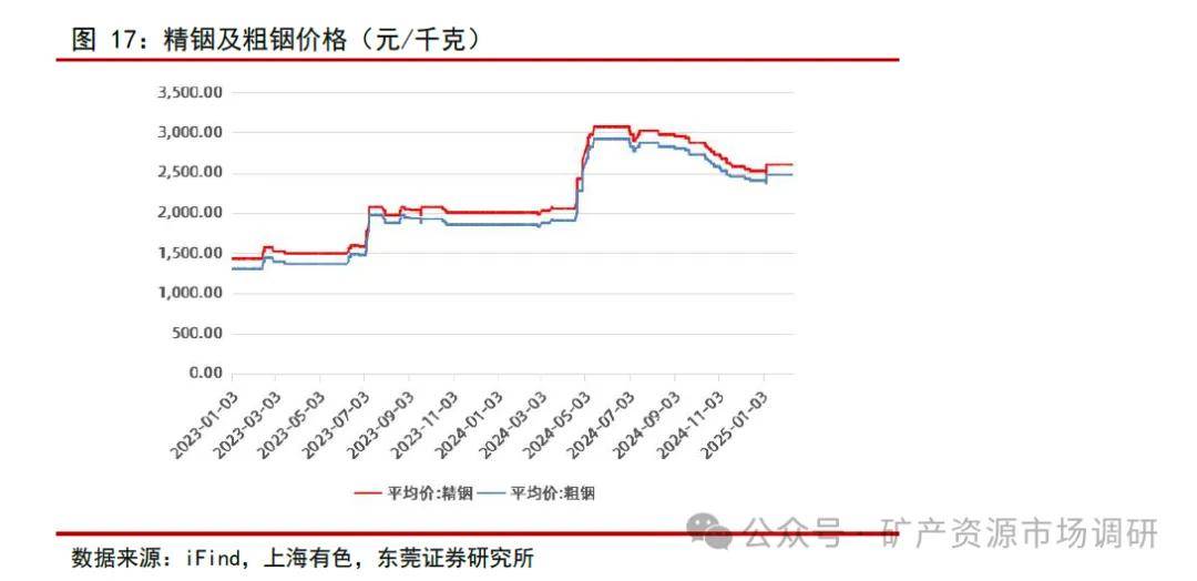 2024 年一季度至二季度前期,銦價處于相對低位。二季度中旬,粗銦原料供應(yīng)持續(xù)偏緊,小金屬交易熱度提升,同時顯示器、平板電腦、智能手機等出貨量提升,拉動對ITO 靶材的需求,銦價快速上漲。因終端市場需求未及此前樂觀預(yù)期,且高位銦價抑制下游采購意愿,使得銦價在三季度及四季度持續(xù)走弱。