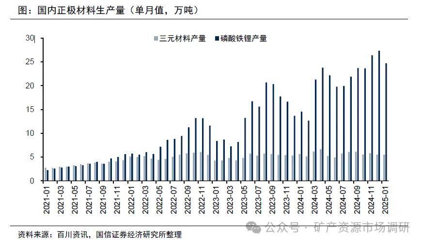國內(nèi)正極材料需求預期逐步提升。2024年,9月和10月國內(nèi)正極材料需求呈現(xiàn)旺季不旺的格局;但11月和12月又呈現(xiàn)淡季不淡的趨勢。百川資訊數(shù)據(jù)顯示11月國內(nèi)磷酸鐵鋰產(chǎn)量達26.42萬噸,環(huán)比提升11.66%,12月產(chǎn)量達27.34萬噸,環(huán)比提升3.46%。11月和12月需求超預期,我們認為主要是由于:1)下游企業(yè)提前為春節(jié)備庫;2)年底國內(nèi)新能源車以舊換新補貼搶裝的需求;3)年底國內(nèi)外光伏企業(yè)配儲搶裝的需求;4)美國市場趕在新總統(tǒng)任職之前搶出口的需求?;诖?,市場上修了12月及25年1月下游正極材料的需求預期。另外在近期,國內(nèi)固態(tài)電池發(fā)展有所突破,且國內(nèi)頭部電池企業(yè)推出一些新的擴產(chǎn)規(guī)劃,進一步提振了市場對于中長期鋰電池需求的預期??紤]到國內(nèi)插混車型市占率進一步提升,插混車型單車帶電量低于純電車型,實際鋰消費量低于總銷量增速。