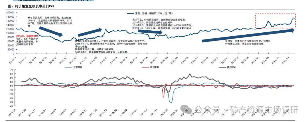 u 出口管制,配額收緊、需求韌性支撐鎢價(jià)高企。2024年12月將鎢列入兩用物項(xiàng)清單,限制初級產(chǎn)品出口,倒逼產(chǎn)業(yè)鏈升級。 2025年第一批開采指標(biāo)同比降6.45%,江西主產(chǎn)區(qū)配額減少2370噸,強(qiáng)化供應(yīng)偏緊預(yù)期。 今年來APT開工率居高不下,新能源汽車、軍工領(lǐng)域?qū)Ω叨擞操|(zhì)合金需求增長,顯示需求韌性,支撐中高端鎢品價(jià)格。