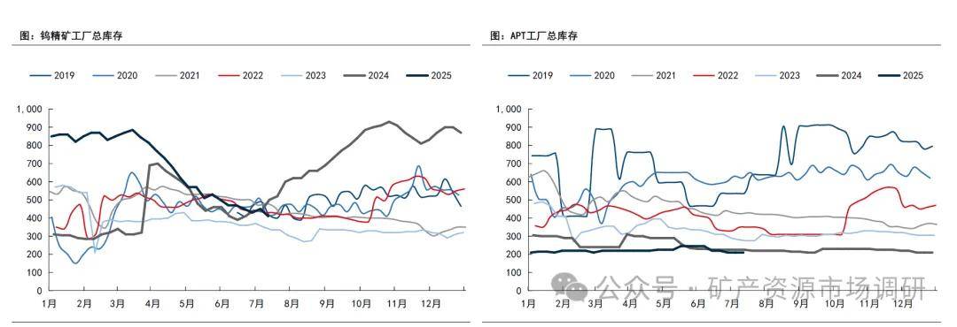 u 上半年鎢做為戰(zhàn)略資源重要性提升,礦山供應(yīng)持續(xù)趨于緊張,市場整體現(xiàn)貨庫存較少,未來或?qū)⒅蝺r格繼續(xù)提升。其中鎢精礦和APT工廠總庫存均處于近五年低位。