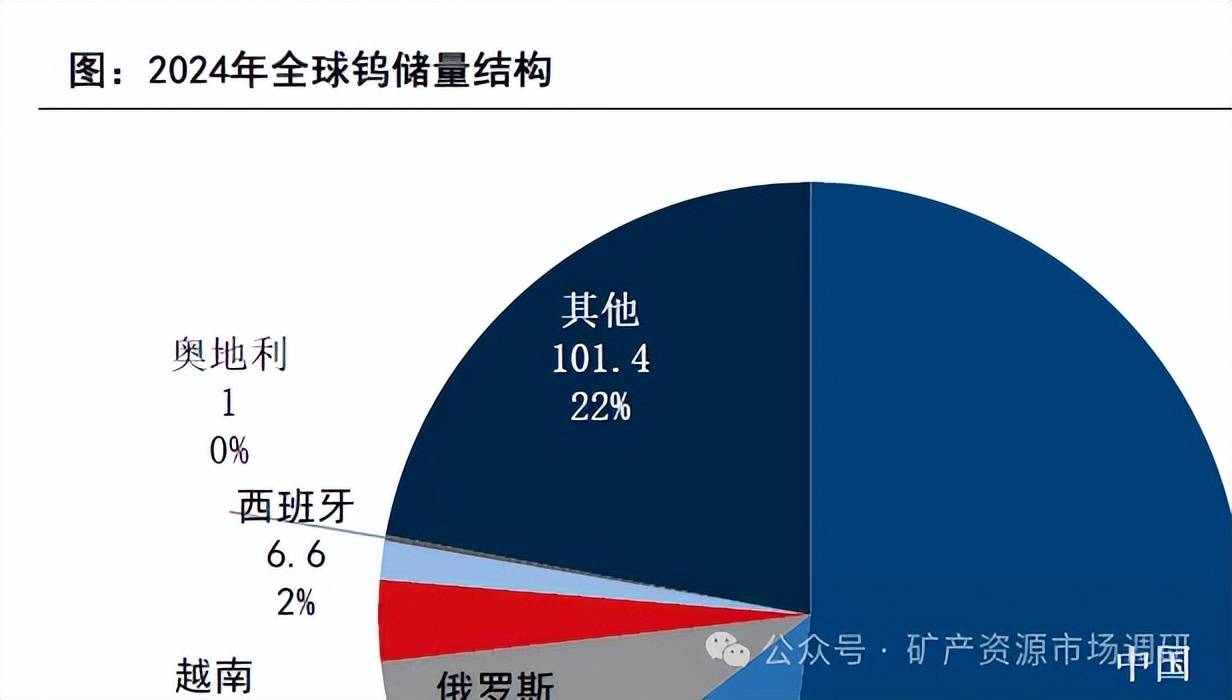 發(fā)現(xiàn)大湖塘,朱溪等特大型鎢礦。2024年,全球鎢資源儲量達到460萬噸;按照2024年產(chǎn)8.1萬噸的消耗速度靜態(tài)計算,全球鎢礦儲量