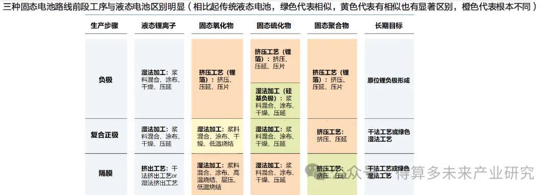 2)干法電極:在無溶劑的環(huán)境下,將活性材料、導(dǎo)電劑和固態(tài)粘合劑進(jìn)行干法混合后,將其輥壓覆蓋在集流體表面來形成電極。干法技術(shù)在固態(tài)電池享有突出的工藝優(yōu)勢:干法工藝相比起傳統(tǒng)濕法工藝有諸多優(yōu)勢,或?qū)⒊蔀槲磥砉虘B(tài)電池制造的主要方向。
