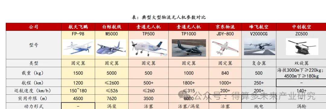 ◥ 無(wú)人機(jī)物流體系由干、支、末三類航線構(gòu)成,無(wú)人機(jī)及基礎(chǔ)設(shè)施的要求各有不同。1)末端物流:城市10km以內(nèi)短距物流服務(wù),使用小型多旋翼無(wú)人機(jī)執(zhí)行快遞投遞等任務(wù)。2)支線物流:100~1000km的中長(zhǎng)距離服務(wù),使用中大型固定翼或復(fù)合翼無(wú)人機(jī),航線時(shí)長(zhǎng)數(shù)十小時(shí),可復(fù)用現(xiàn)有民航機(jī)場(chǎng)、空管等基礎(chǔ)設(shè)施。3)干線物流:1000km以上的長(zhǎng)距離服務(wù),使用大載重長(zhǎng)航時(shí)大型固定翼無(wú)人機(jī),動(dòng)力由電機(jī)升級(jí)為渦扇、渦槳等傳統(tǒng)航空發(fā)動(dòng)機(jī),可完全復(fù)用現(xiàn)有民航基礎(chǔ)設(shè)施。