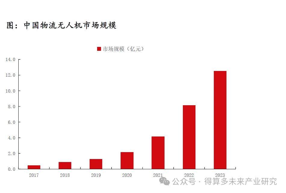◥ 從市場(chǎng)規(guī)模看,2023年中國(guó)物流無(wú)人機(jī)市場(chǎng)規(guī)模為12.6億元,其中干線/支線領(lǐng)域 4.48 億元(占比 35.56%),末端領(lǐng)域8.12億元(占比64.44%)。