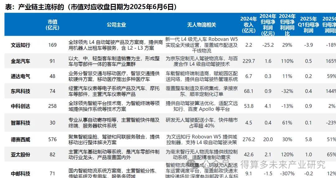一方面無人物流車企,如文遠知行、金龍汽車等直接受益于行業(yè)需求爆發(fā);同時無人物流車企供應(yīng)商,包括智能化供應(yīng)商,如激光雷達、芯片、域控、線控等受益,也包括提供自動駕駛軟件及算法企業(yè)。