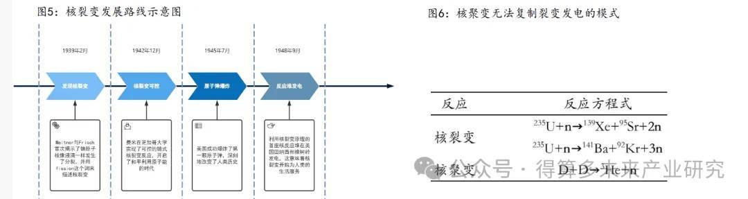 核裂變從實(shí)驗(yàn)室走向裂變電站僅用了約10年。1939年,科學(xué)家首次揭示了鈾原子核的分裂現(xiàn)象;1945年,利用核裂變?cè)碇圃斐龅牡谝活w原子彈在美國(guó)阿拉莫戈多沙漠爆炸;3年后,第一座核裂變電站便在美國(guó)田納西州橡樹(shù)嶺實(shí)現(xiàn)發(fā)電。1951年,利用核聚變?cè)碇圃斓臍鋸椩谔窖笊系亩髂嵬锌藣u實(shí)現(xiàn)爆炸,然而至今70年人類依然未能實(shí)現(xiàn)可控核聚變發(fā)電。