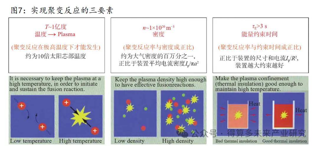 實(shí)現(xiàn)核聚變反應(yīng),需要同時(shí)滿足三個(gè)條件:足夠高的溫度、一定的密度和一定的能量約束時(shí)間,三者的乘積稱為聚變?nèi)朔e。根據(jù)勞遜判據(jù),只有聚變?nèi)朔e大于一定值,才能產(chǎn)生有效的聚變功率輸出。