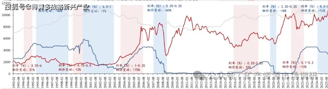 歷史復(fù)盤(pán)角度,金融屬性與常識(shí)相悖,加息銅價(jià)上升、降息銅價(jià)下降,我們判斷原因一:商品屬性主導(dǎo)銅價(jià);原因二:經(jīng)濟(jì)滯后性導(dǎo)致加息過(guò)程仍處于通脹階段,需求仍向好發(fā)展 。從金融屬性角度,近30年歷史前4輪加息降息過(guò)程中,銅價(jià)均表現(xiàn)為加息銅價(jià)上升、降息銅價(jià)下降態(tài)勢(shì),與常識(shí)有所違背。而在第五輪加息降息過(guò)程中,2022.1-2023.7加息階段銅價(jià)首次下跌,跌幅13%,2024.9-2025.10降息階段銅價(jià)上漲,漲幅達(dá)16%,金融屬性影響再次助力銅價(jià)上漲。
