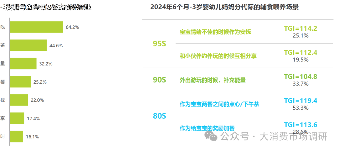 3歲以內(nèi)嬰幼兒,母親多為照顧孩子的主力;寶媽們重視孩子的喂養(yǎng),為孩子添加各類零輔食