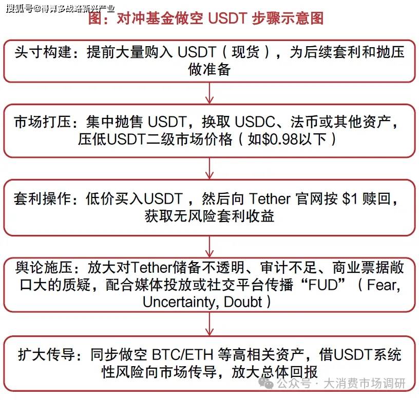 2022年5月,加密資產(chǎn)市場(chǎng)經(jīng)歷劇烈動(dòng)蕩,導(dǎo)火索是一種算法穩(wěn)定幣TerraUSD(UST)突然脫錨,未能維持其與美元的1:1掛鉤目標(biāo)。UST的崩盤引發(fā)了投資者恐慌性贖回,不僅重創(chuàng)其“姊妹幣”LUNA,也迅速蔓延至整個(gè)穩(wěn)定幣和去中心化金融(DeFi)領(lǐng)域,導(dǎo)致市場(chǎng)出現(xiàn)大范圍資產(chǎn)價(jià)格下跌和信心危機(jī)。多家傳統(tǒng)對(duì)沖基金(包括Fir Tree、Soros Fund、TradFi機(jī)構(gòu))針對(duì)Tether儲(chǔ)備透明度不足、商業(yè)票據(jù)持倉(cāng)比例高等問(wèn)題發(fā)起多輪空頭策略操作。Firtree 認(rèn)為Tether 所披露的資產(chǎn)儲(chǔ)備中,商業(yè)票據(jù)(Commercial Paper)占比較高,且部分資產(chǎn)可能暴露于高風(fēng)險(xiǎn)信用主體(如中國(guó)房地產(chǎn)企業(yè)),在全球信用緊縮背景下存在大幅貶值或流動(dòng)性風(fēng)險(xiǎn)。如果票據(jù)貶值,可能會(huì)導(dǎo)致Tether的儲(chǔ)備和代幣價(jià)格大幅下跌,同時(shí)利用輿論加速 Tether 面臨贖回壓力,加速價(jià)格波動(dòng)。包括Fir Tree、Soros Fund在內(nèi)的傳統(tǒng)金融機(jī)構(gòu)采用“多層套利+信心打擊”的復(fù)合策略,意圖通過(guò)結(jié)構(gòu)性二級(jí)市場(chǎng)拋壓、媒體FUD(Fear,Uncertainty,Doubt)投放、鏈上流動(dòng)性擠兌等手段制造USDT短期脫錨,撬動(dòng)兌付壓力并放大系統(tǒng)性波動(dòng)??焖仝H回響應(yīng),提升透明度,清退高風(fēng)險(xiǎn)資產(chǎn)是Tether的主要應(yīng)對(duì)措施。Tether在不到一個(gè)月的時(shí)間內(nèi)成功贖回了約 250 億美元 USDT,展現(xiàn)了其強(qiáng)大的流動(dòng)性和韌性。2022 年第二季度,Tether 報(bào)告商業(yè)票據(jù)持倉(cāng)從一季度末約201億美元降至84億美元,并在四季度末徹底清零。2022 年夏,Tether替換 Cayman 會(huì)計(jì)所,改由 BDO作為季度儲(chǔ)備確認(rèn)機(jī)構(gòu),并承諾將每月披露,成功度過(guò)信任危機(jī)。