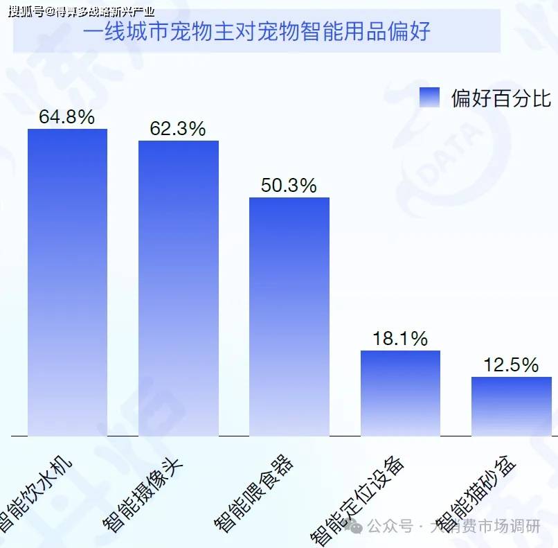 智能喂養(yǎng)設備占比 53%,在一線城市偏好中,智能飲水機、喂食器居前,體現(xiàn)寵物主對飲食保障的重視,預計其主導地位將持續(xù)鞏固。智能攝像頭偏好占比 62.3%,反映寵物主對寵物狀態(tài)監(jiān)測需求增加,未來功能或進一步升級。智能穿戴、定位、貓砂盆等品類雖占比低,但有發(fā)展?jié)摿?,技術進步和消費需求提升或推動其發(fā)展。