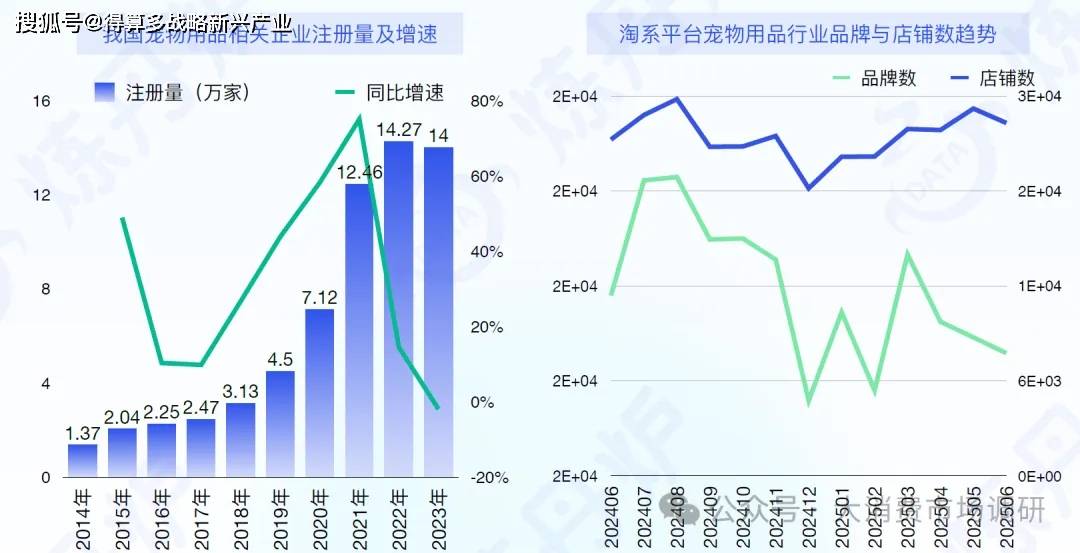 在2014-2023年期間,我國寵物用品相關(guān)企業(yè)注冊量從1.37萬家大幅增長至14萬家,整體增長趨勢顯著。同時,淘系平臺上寵物用品行業(yè)的品牌數(shù)和店鋪數(shù)也在波動中上升。然而,市場集中度卻較低,這意味著行業(yè)內(nèi)企業(yè)眾多,競爭格局較為分散,尚未形成少數(shù)幾家企業(yè)占據(jù)主導地位的局面,眾多企業(yè)在市場中相互競爭,