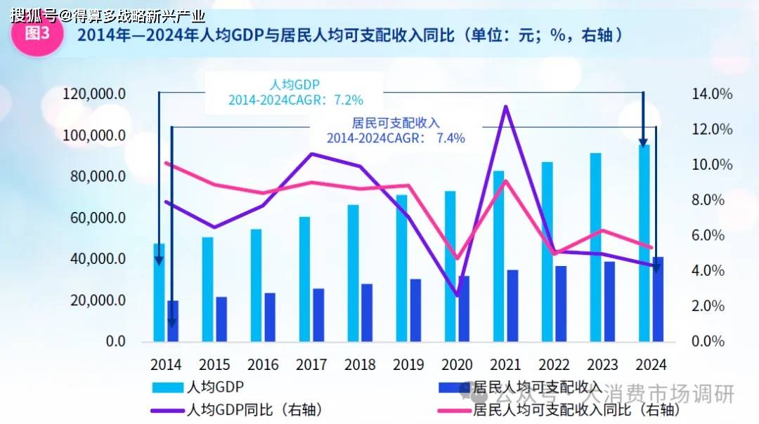 2024年,全球經(jīng)濟(jì)仍處于周期性調(diào)整階段,國(guó)際環(huán)境錯(cuò)綜復(fù)雜。面對(duì)外部壓力加大、內(nèi)部困難增多的復(fù)雜嚴(yán)峻形勢(shì),中國(guó)經(jīng)濟(jì)和消費(fèi)活動(dòng)均保持低速穩(wěn)定增長(zhǎng)展現(xiàn)出較強(qiáng)韌性。2024年,中國(guó)GDP總量首次突破130萬(wàn)億元,主要經(jīng)濟(jì)社會(huì)發(fā)展目標(biāo)圓滿完成,同比增長(zhǎng)5.0%。作為“十四五”規(guī)劃承前啟后的關(guān)鍵年2024年中國(guó)堅(jiān)持穩(wěn)中求進(jìn)的工作總基調(diào),有效應(yīng)對(duì)多重挑戰(zhàn),為高質(zhì)量發(fā)展提供了有力支撐。