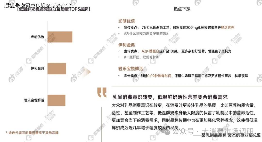 消費(fèi)者對健康需求的追逐映射到對低溫鮮奶[活性營養(yǎng)]及[免疫力]的互動關(guān)注,更多低溫鮮奶品牌強(qiáng)調(diào)其健康營養(yǎng)成分以契合當(dāng)下消費(fèi)者的需求。