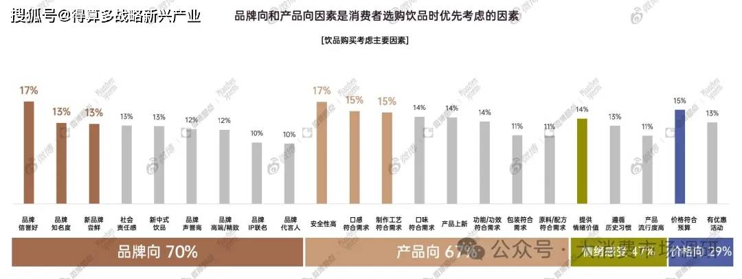 消費(fèi)者在選購飲品時優(yōu)先考慮品牌向]因素,如[信譽(yù)度]、[知名度]和[新品牌]等:其次會考慮[產(chǎn)品向]因素,如[安全性]、[口感]和[制作工藝]等。
