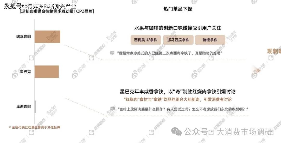現(xiàn)制咖啡品類通過[口味創(chuàng)新]和[食材突破]成功觸動消費(fèi)者的[獵奇嘗鮮]心理,有效激發(fā)消費(fèi)者興趣,引發(fā)社交平臺廣泛討論與傳播熱潮。