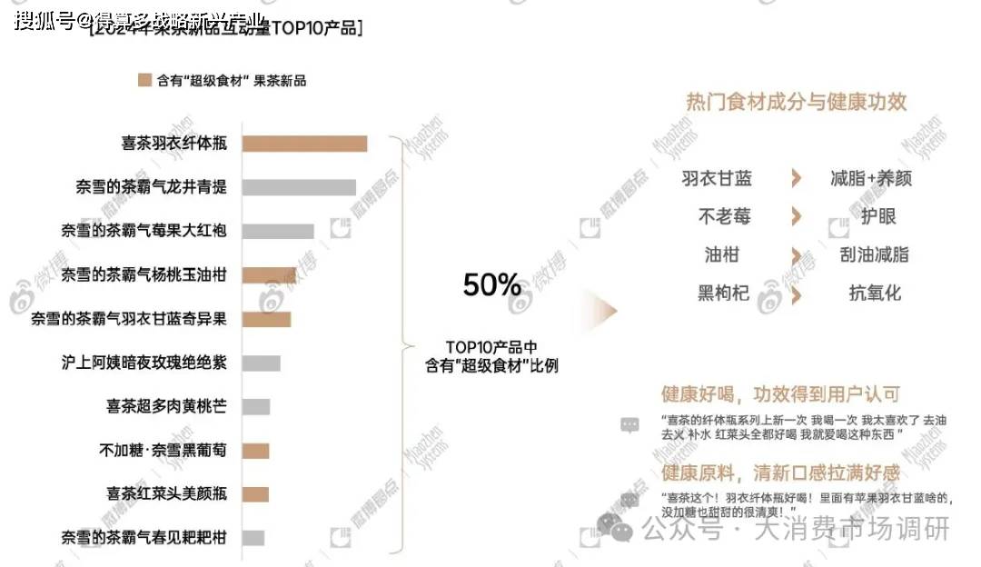 添加「超級食材]是果茶創(chuàng)新的重要靈感來源,果茶食材所提供的「健康功效]引起消費(fèi)者的全網(wǎng)熱議討論。